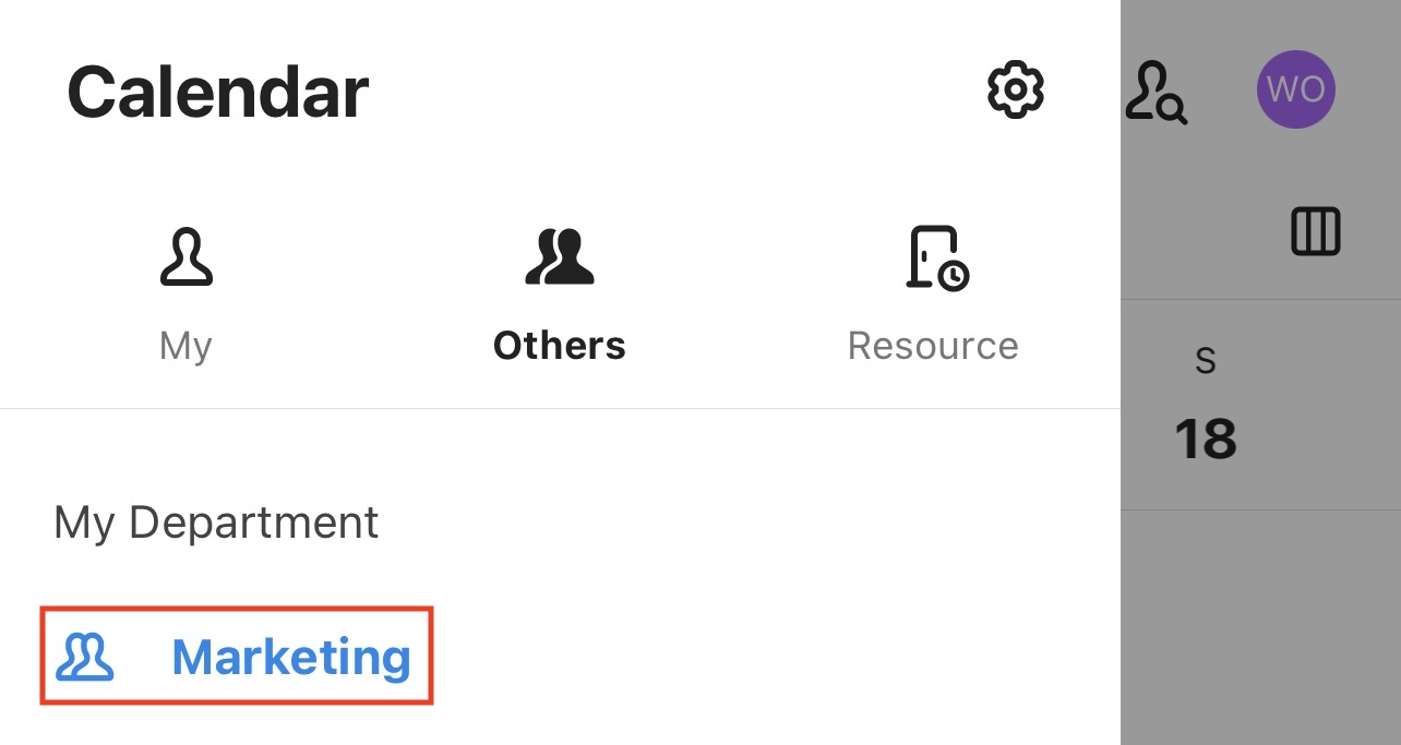 In the 'Others' section of the calendar, you can view the schedules of both your team members and members of other teams. Frequently viewed members can be added to pinned schedule groups.