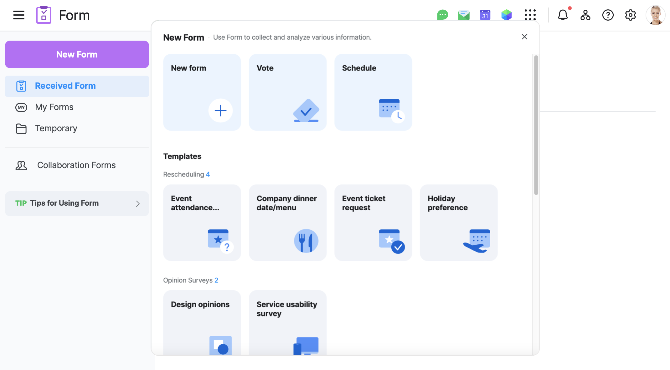 You can create templates for common survey patterns used in your work, such as employee check-ins or event participation surveys.