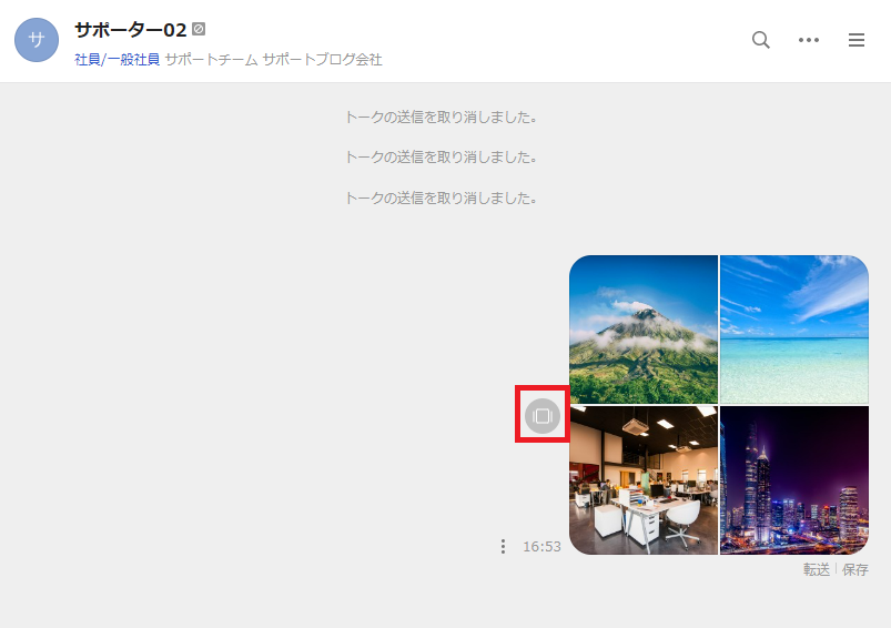 まとめて送信された画像の横に表示されている、グレーのアイコンをクリックすると画像の表示方法が変わり、、