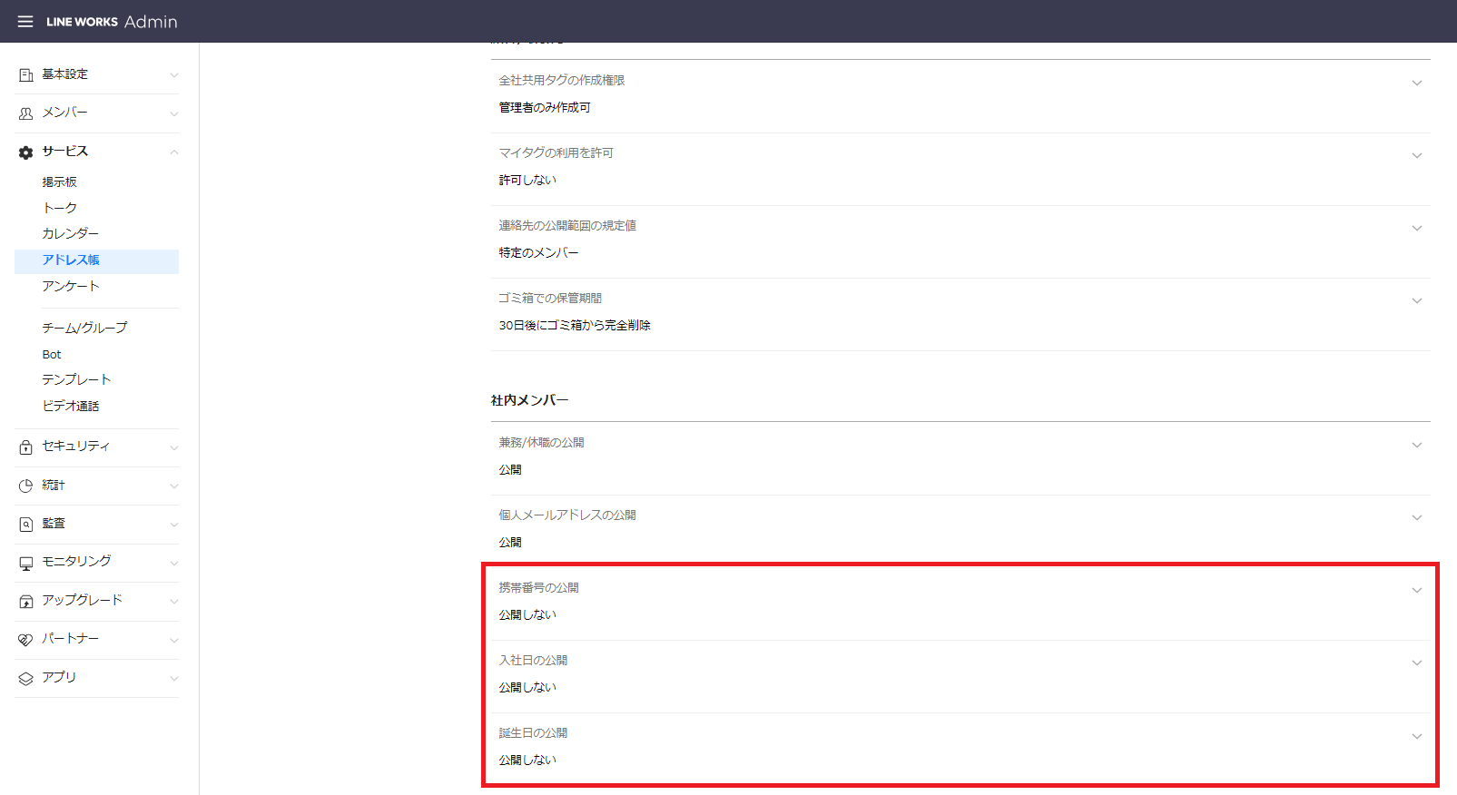 - メンバー情報の一部を非表示に設定可能(管理者様向け)