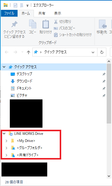 Driveエクスプローラーがアップデートされた後は「LINE WORSK Drive(W:)」が表示されないため、