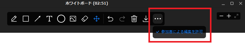 参加者の編集を許可するかどうかは「ホワイトボードを開始したユーザー」のみ設定できます。