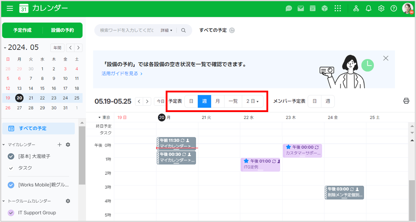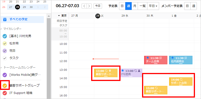 予定の色の変更は、自分のカレンダーの予定にだけ適用されます。他のメンバーのカレンダーには変更した予定の色は反映されません。