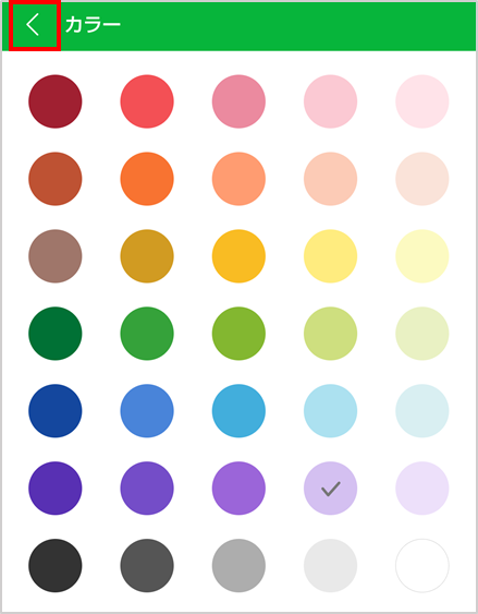 図2. 「カレンダーの作成/設定」画面(モバイル版アプリ) - 「カレンダー設定」画面で[カラー]をタップするとカラーパレットが表示されます。