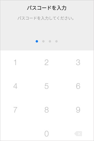*1 パスコードとは、モバイル端末でアプリケーションを起動するときに設定できる4桁の数字です。パスコードを設定すると、アプリケーションの起動時にパスコード入力によるロックをかけることができます。