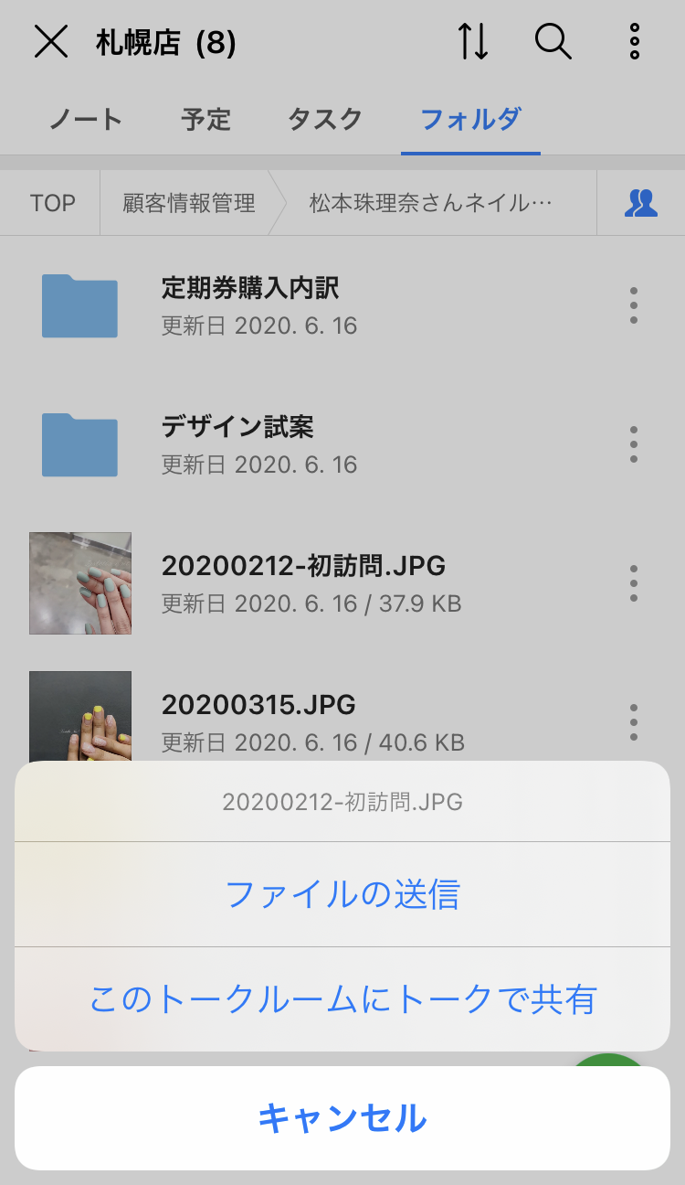 トークルームのフォルダーからファイルを送信する方法を確認しましょう。