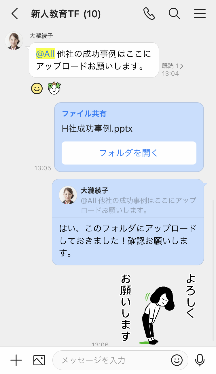 2) ファイルが保存されている場所をトークルームのメンバーに教える