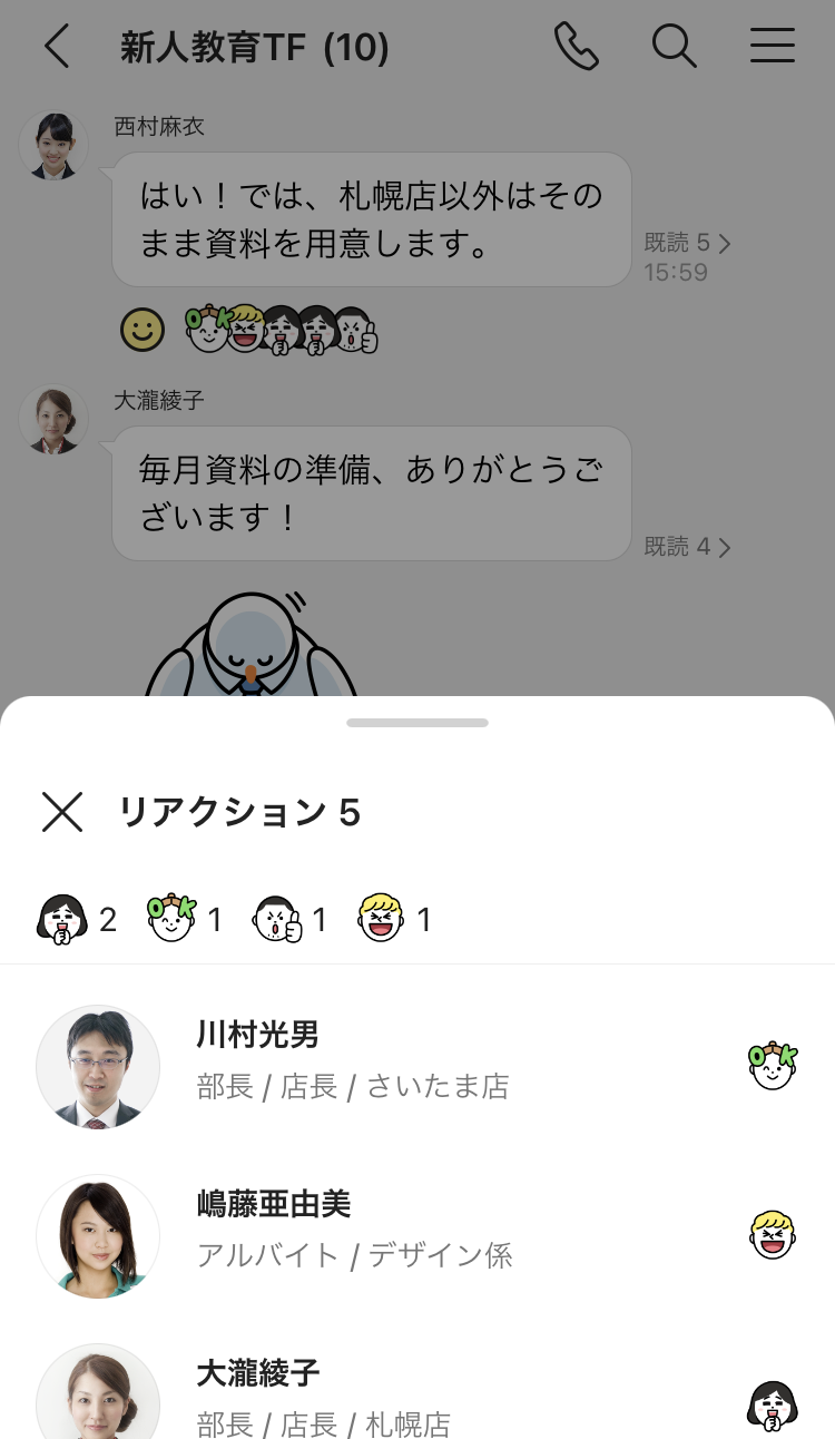 テキストやスタンプを打たなくても、リアクション機能を使えば簡単にトークに反応することができます。