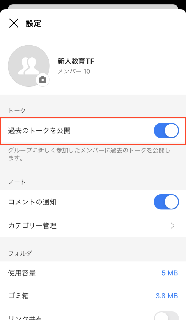 異動やプロジェクトの途中参加など、トークルームに後から参加したメンバーにも過去のトークを公開できます。