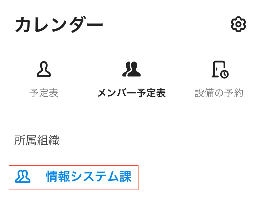 所属部署のメンバーの予定
