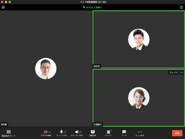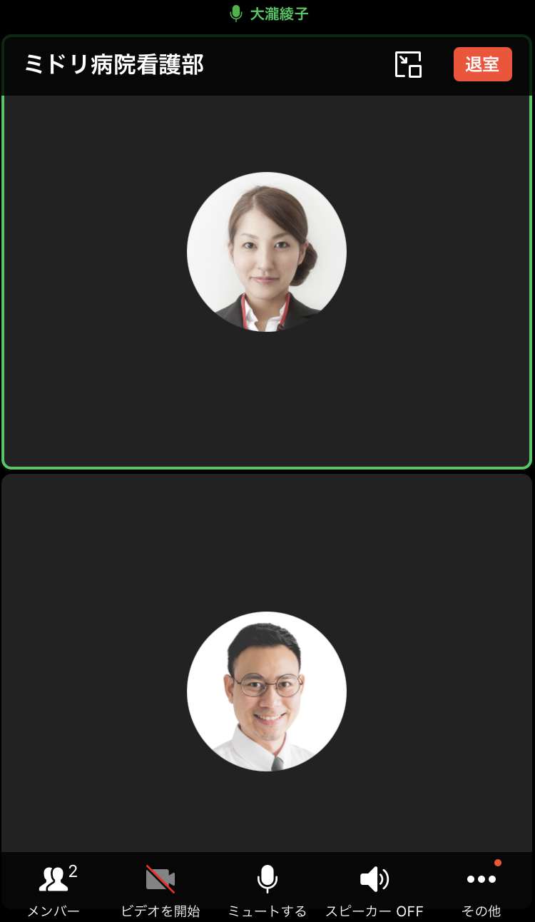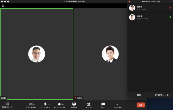 - メンバー:通話に参加したメンバーを確認し、すべてミュートするメニューを確認できます。