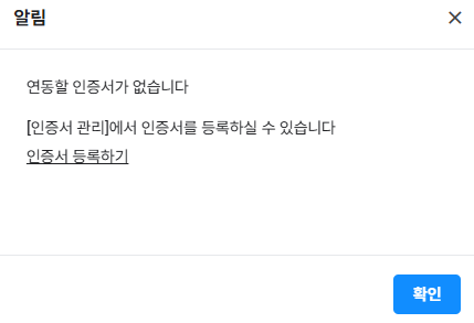 - '인증서 등록하기'를 클릭하여 인증서를 등록합니다.