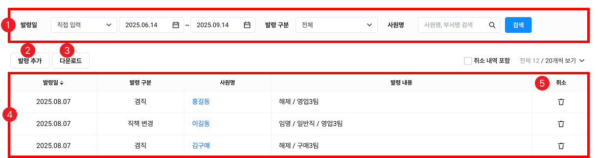 - 취소할 수 있는 발령 건의