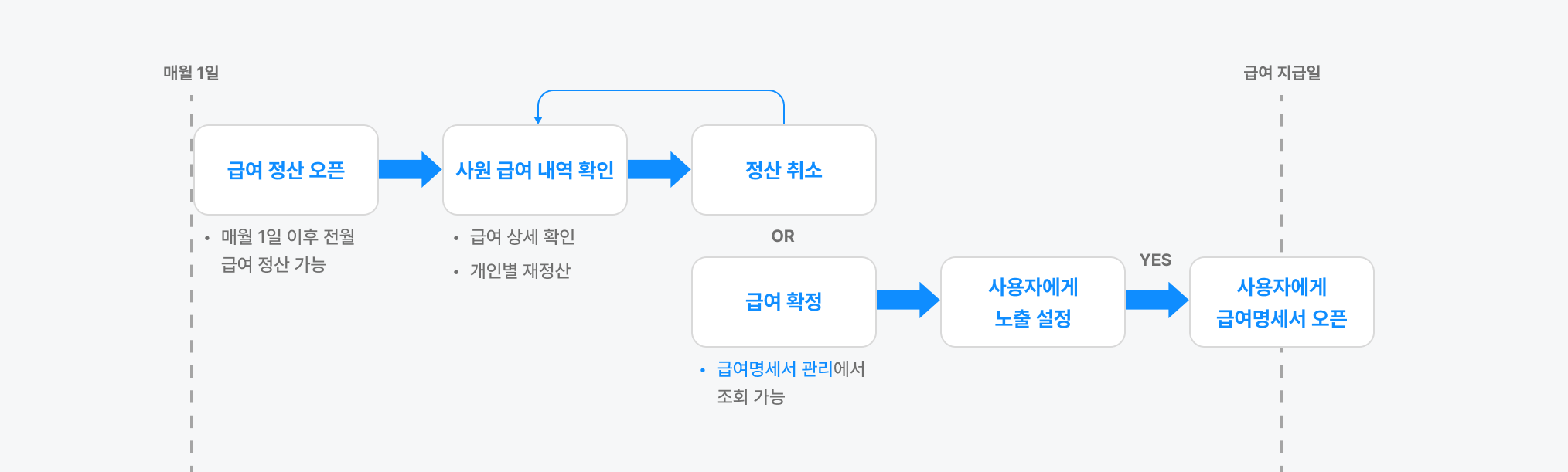 - <예시> 3월 급여가 확정된 경우, 급여 지급일이 회사가 설정한 날(4월 10일)로 노출