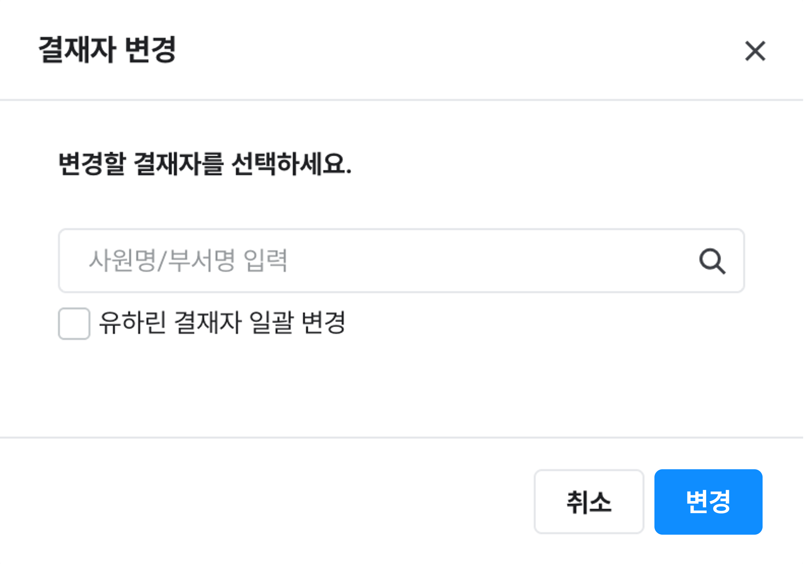 - 결재자 변경 팝업에서 변경할 결재자 선택 후 '변경'을 클릭합니다.