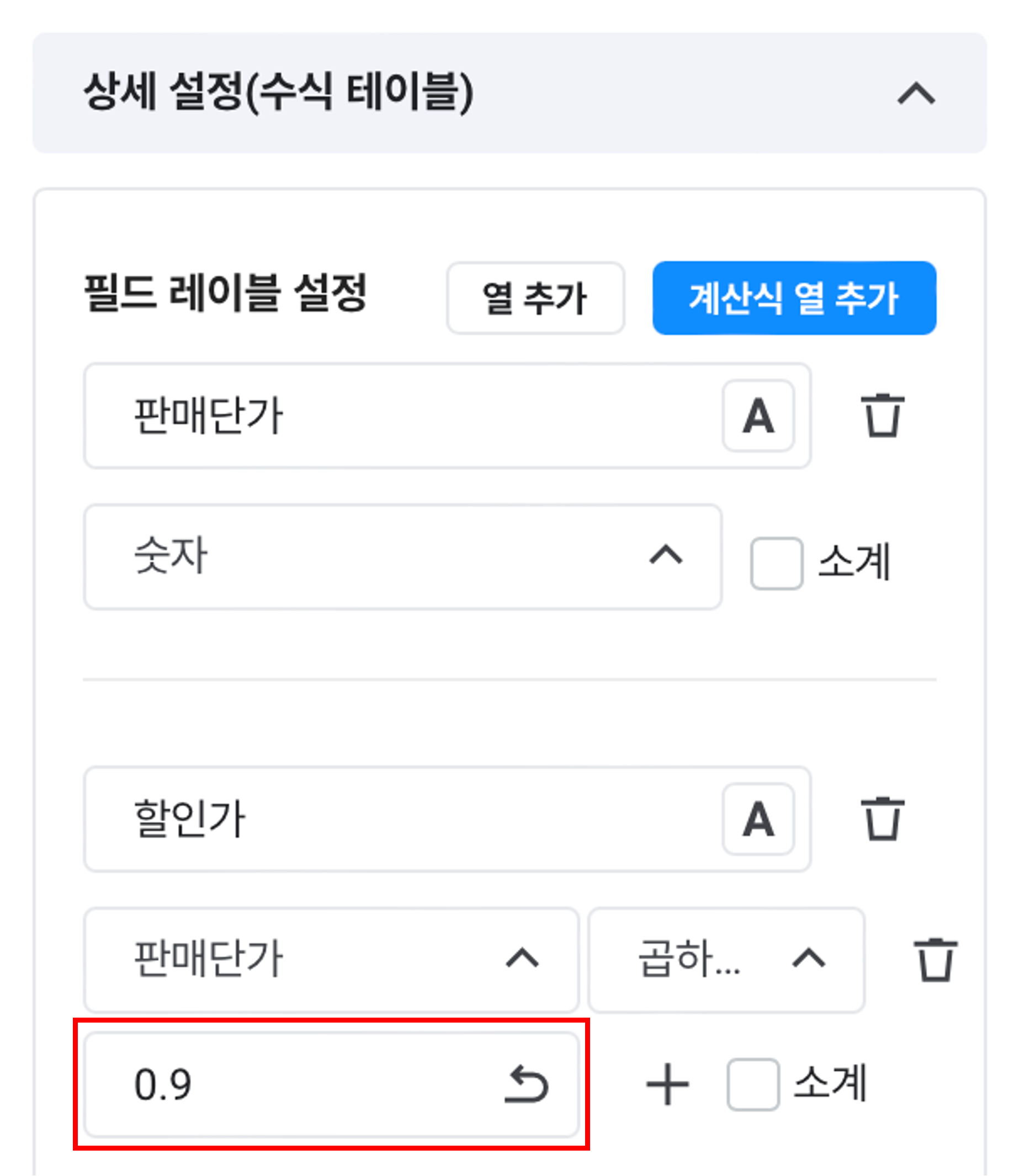 • 상세 설정 사용(서식 상세 구분이 있는 경우 표시): 사용 안 함