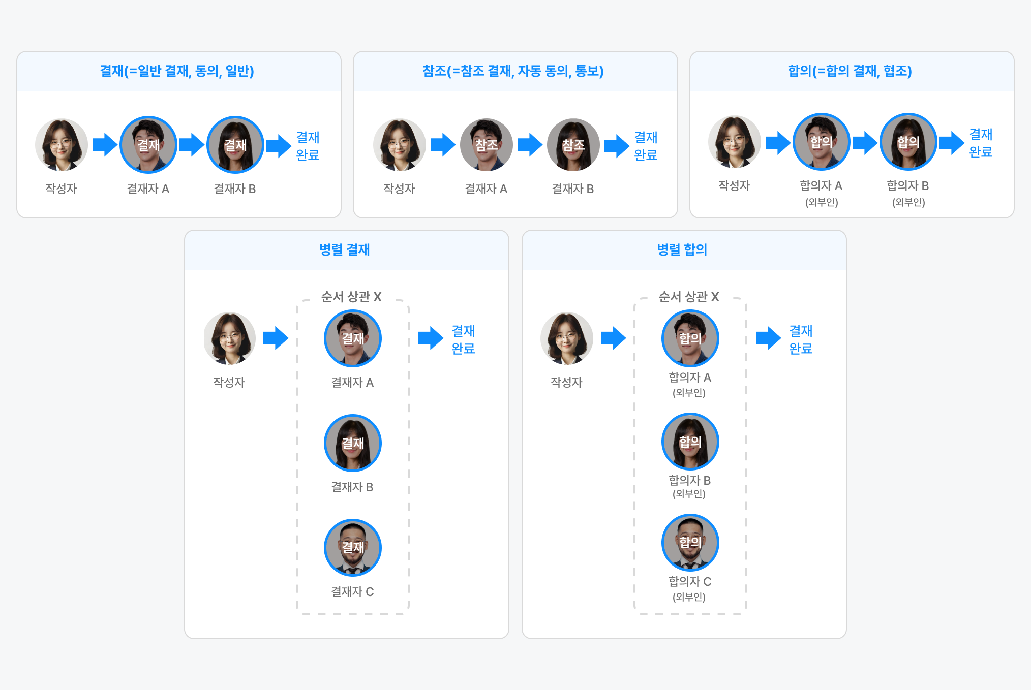 • 결재 구분: 각 결재 구분의 명칭을 선택합니다.(결재 구분 및 결재자 상세 설명 참고)