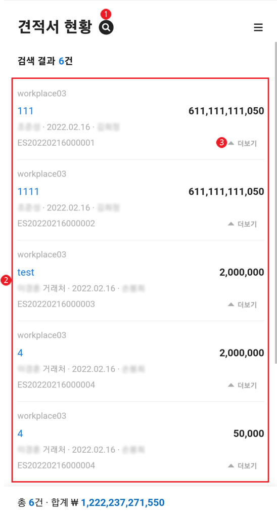 | ③ 더보기 | 견적서의 상세 내용 확인 |