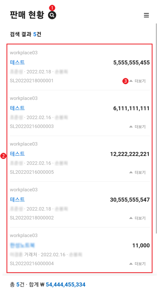| ③ 더보기 | 판매 상세 내용 확인 |