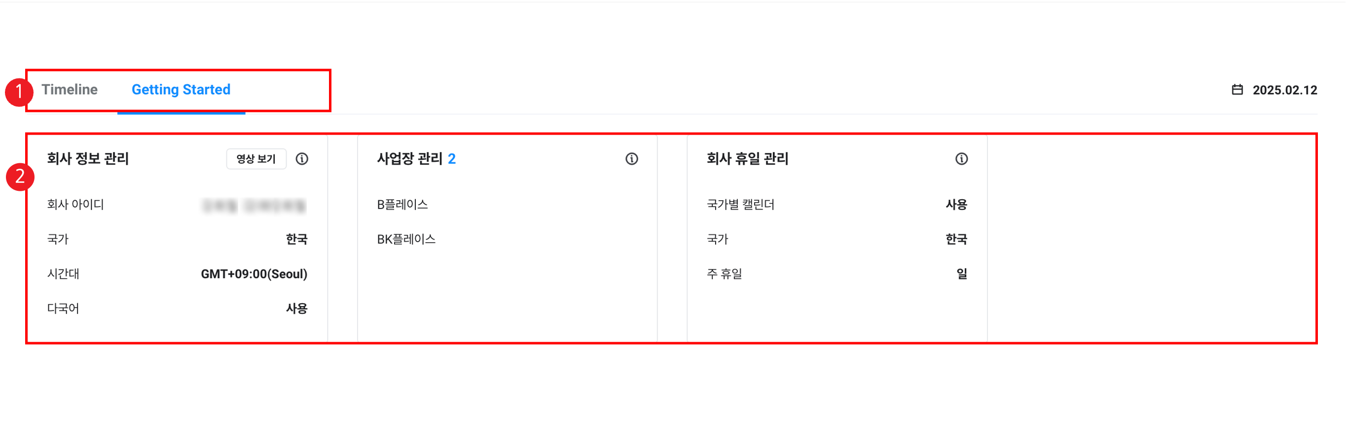 경영지원 설정 메인에서는 회사 정보, 사업장, 회사 휴일 등 필요한 설정 사항을 설정하고 관리할 수 있습니다.