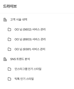 계약서 및 고객 서류를 보관하는 폴더는 일부 구성원에게만 열람 권한을 부여하고, 필요 시 비공개 처리할 수 있습니다.