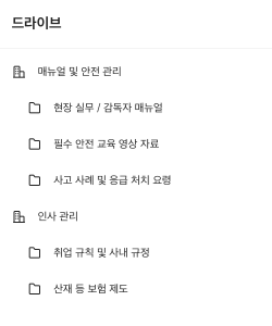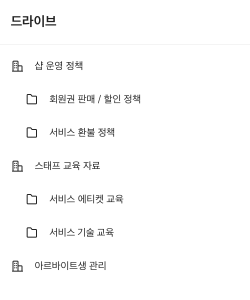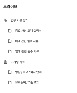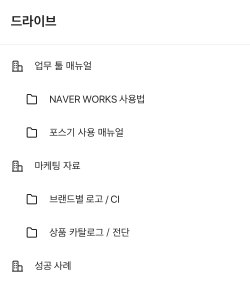 구성원 모두가 숙지해야 하는 교육 자료나 매뉴얼은 공유 드라이브로 전달해보세요.