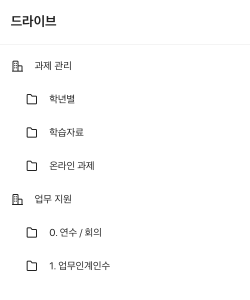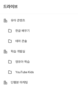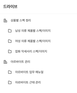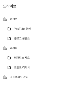 폴더별로 자료 정리가 필요한 경우 정리 요령을 공유 드라이브의 설명에 작성해보세요.
