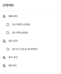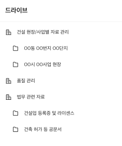 건설 프로젝트와 같은 큰 단위의 협업을 진행한다면 현장/사업별로 폴더를 구분해보세요.