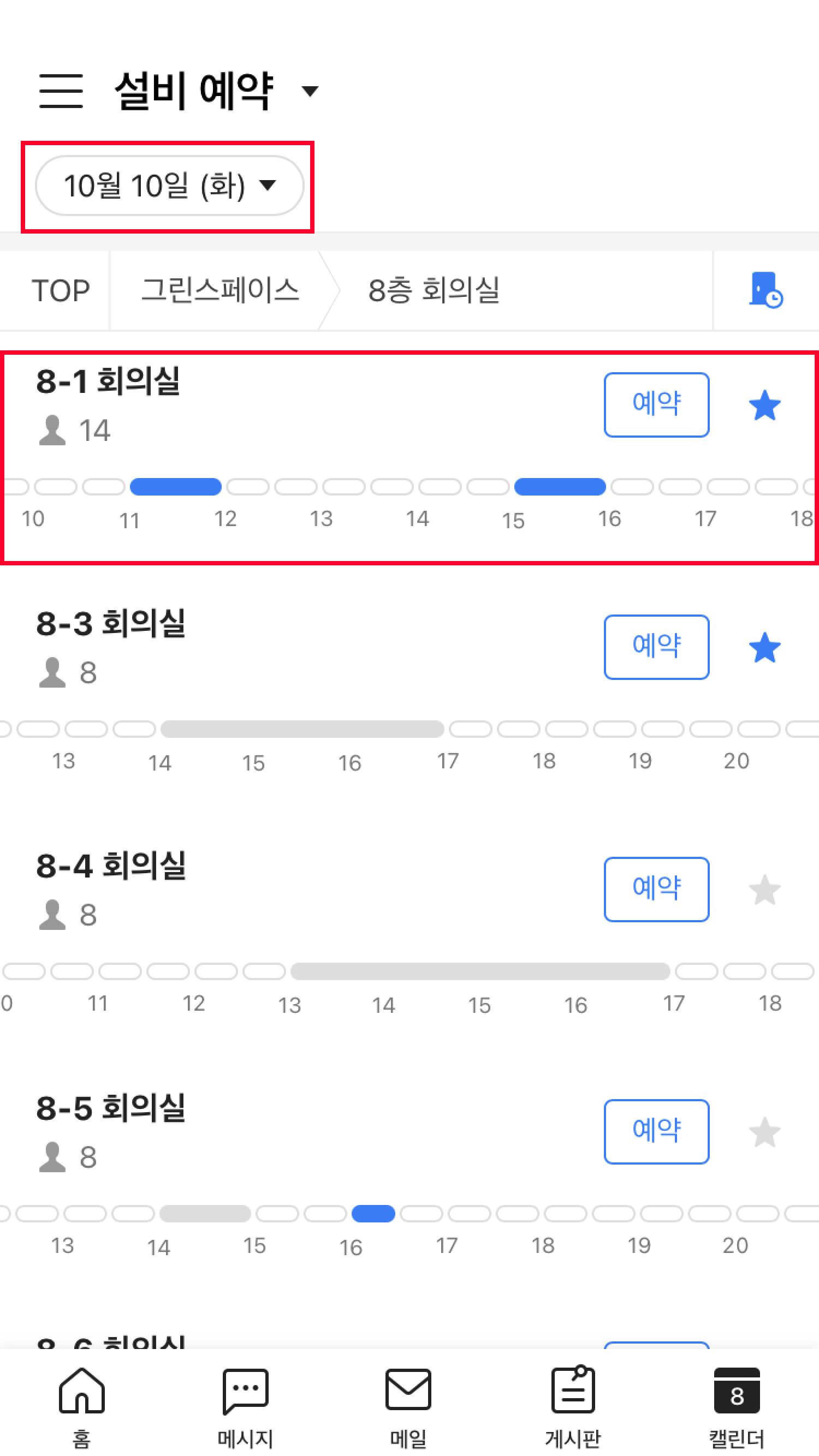 "모든 설비의 예약 상태를 확인한 후, 예약할 설비를 정하고 싶어요."