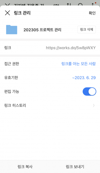 편집 권한을 부여해 함께 파일을 업로드하거나 수정할 수도 있고, 비밀번호 등 보안 설정을 강화할 수도 있습니다.