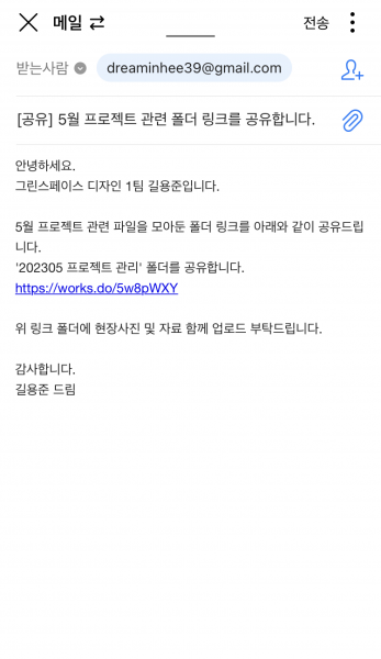 최신 버전의 폴더나 파일에 실시간으로 접근할 수 있는 링크를 보내보세요.