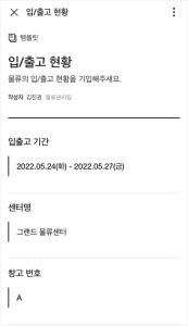 물류 업체의 입출고 현황 관리