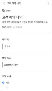 미용실의 고객 예약 내역