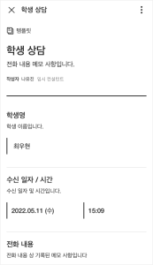 학원의 학생 상담 전화 기록