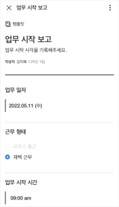 재택 근무 중, 업무 시작 시각 보고