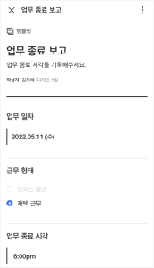재택 근무 중, 업무 종료 시각 보고