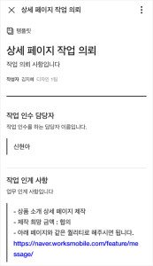 디자인팀의 상세페이지 작업 의뢰서