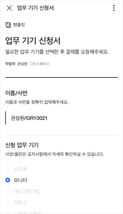 사내 업무 기기 신청서