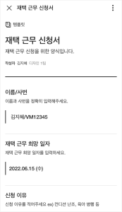 재택 근무 신청서