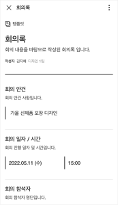 회의록, 매출 보고서, 건강 상태 자가진단서 등 템플릿의 활용 방법은 다양합니다.