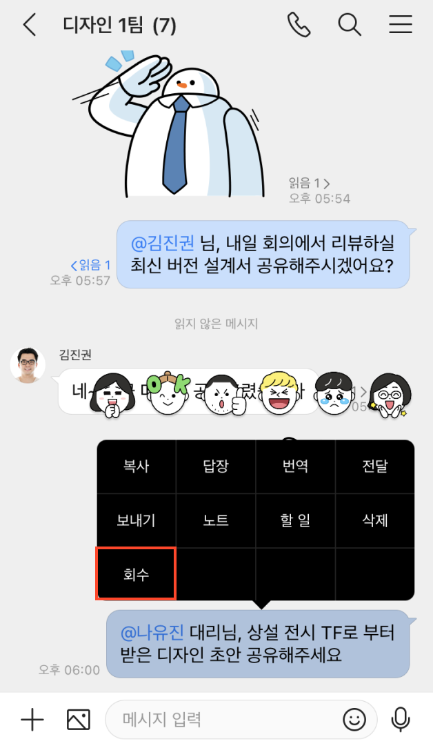 메시지 회수하는 방법을 알아보세요.
