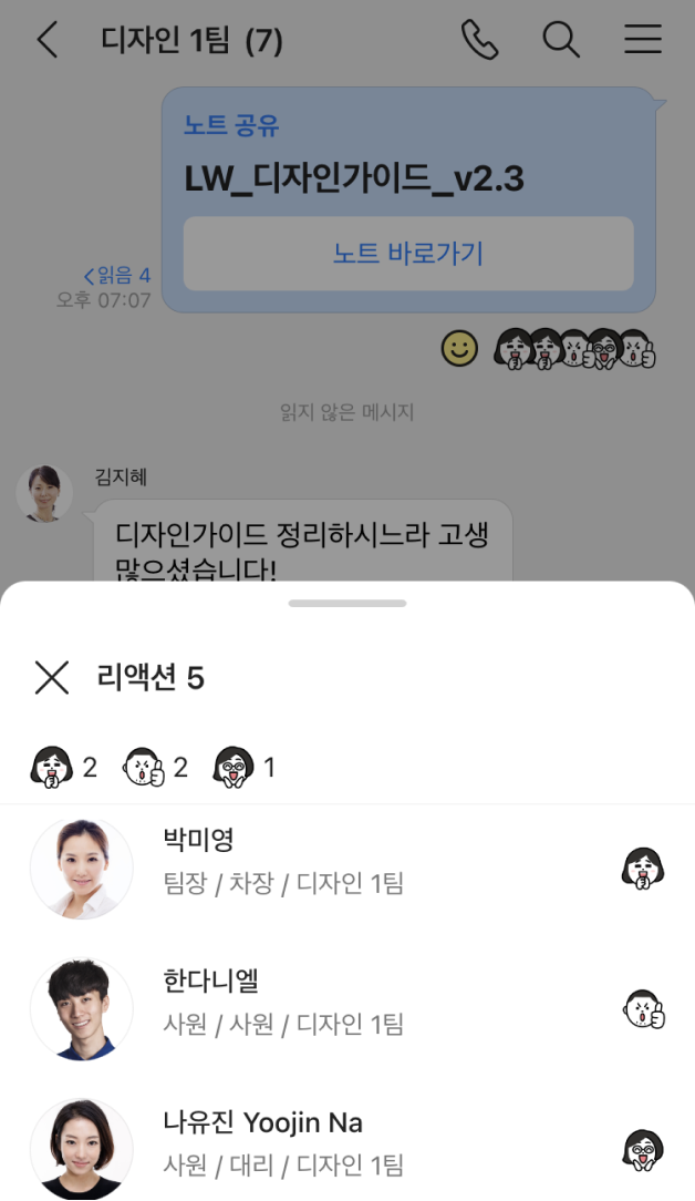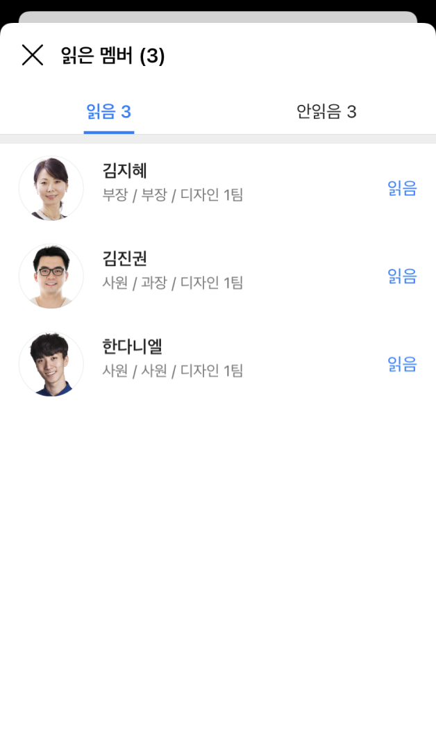 읽은 멤버, 안 읽은 멤버를 따로 볼 수 있어 효율적인 업무가 가능합니다.