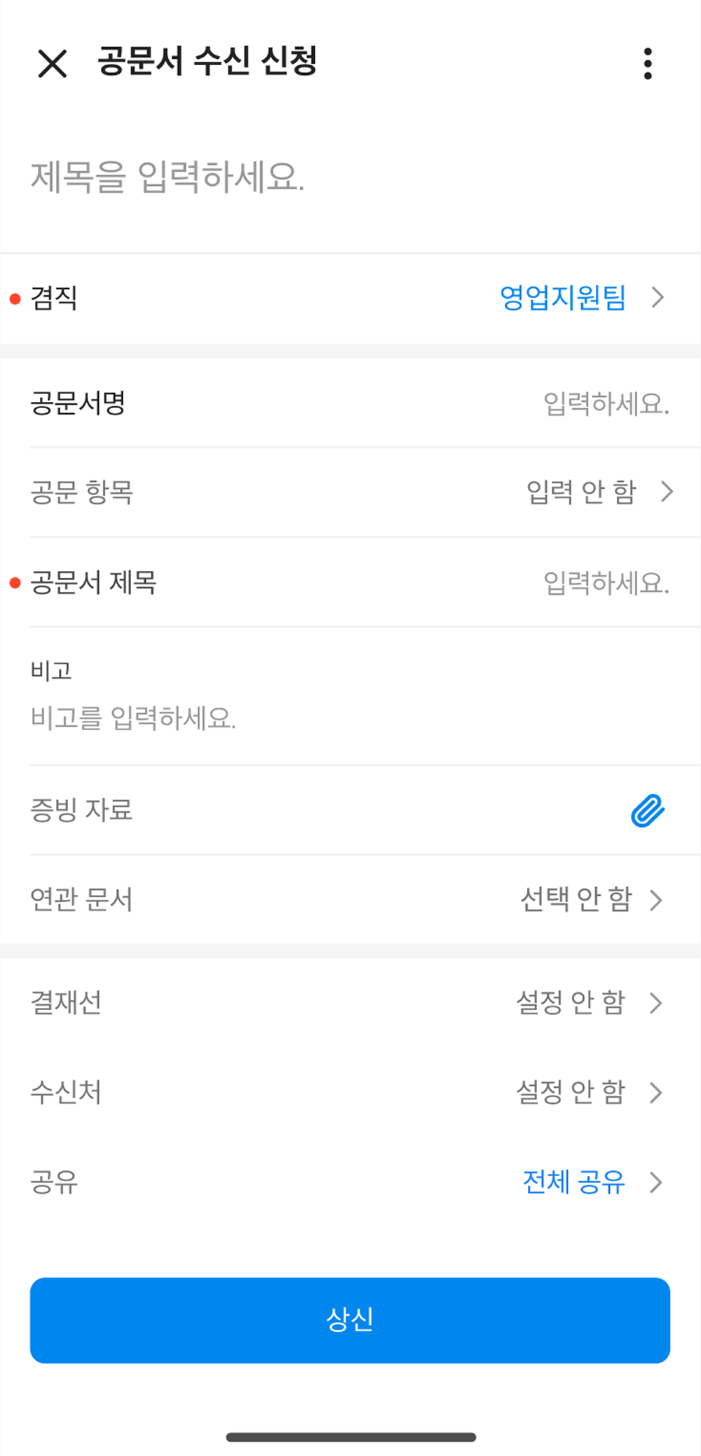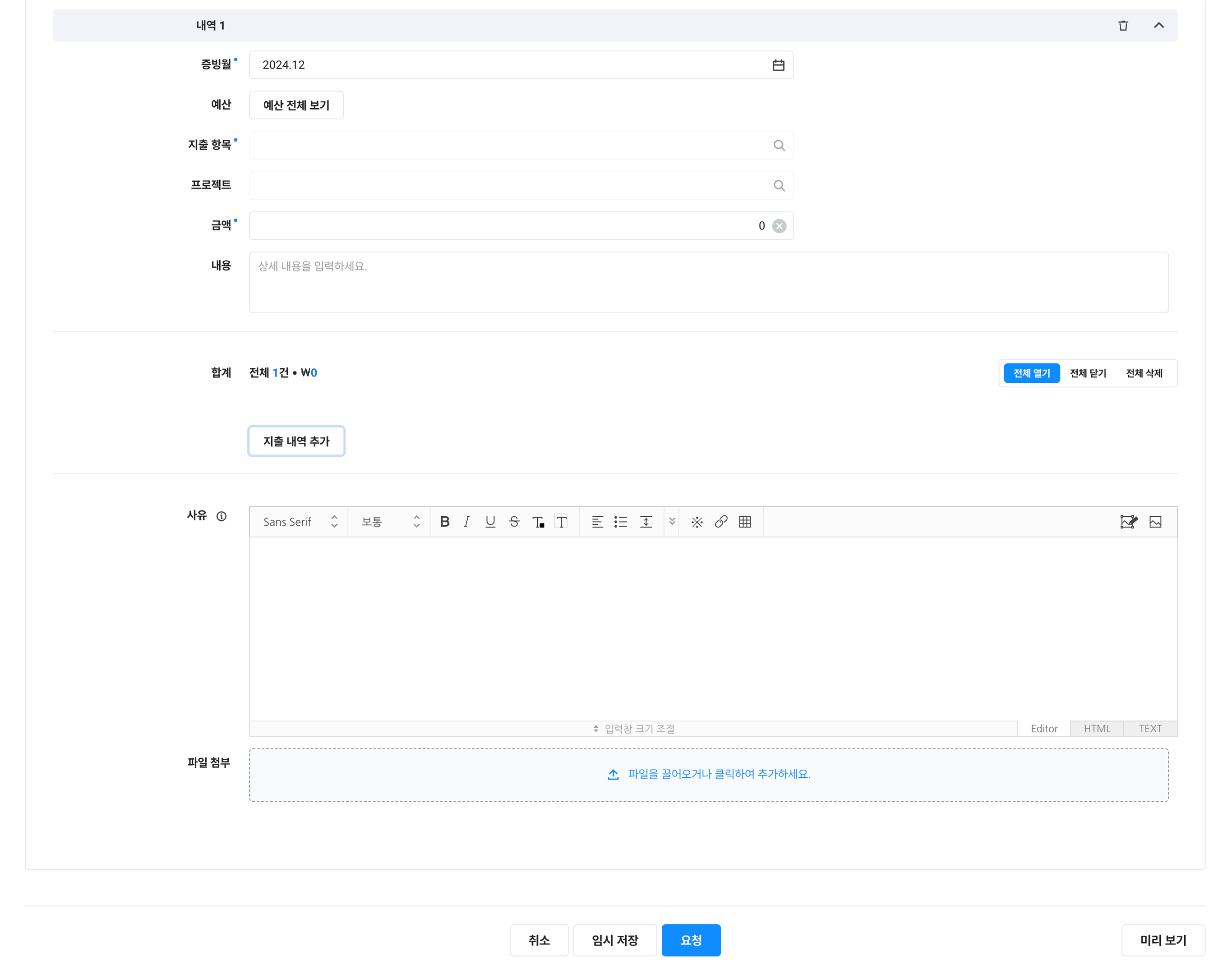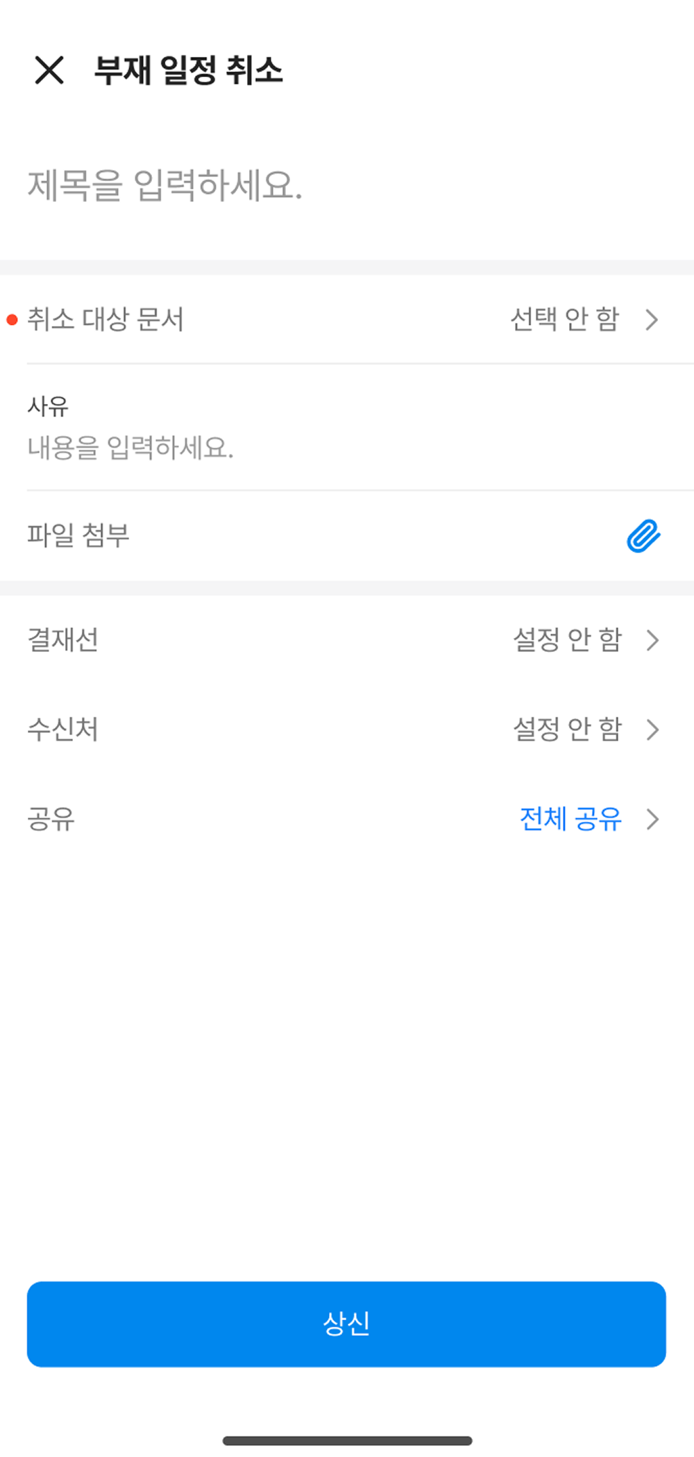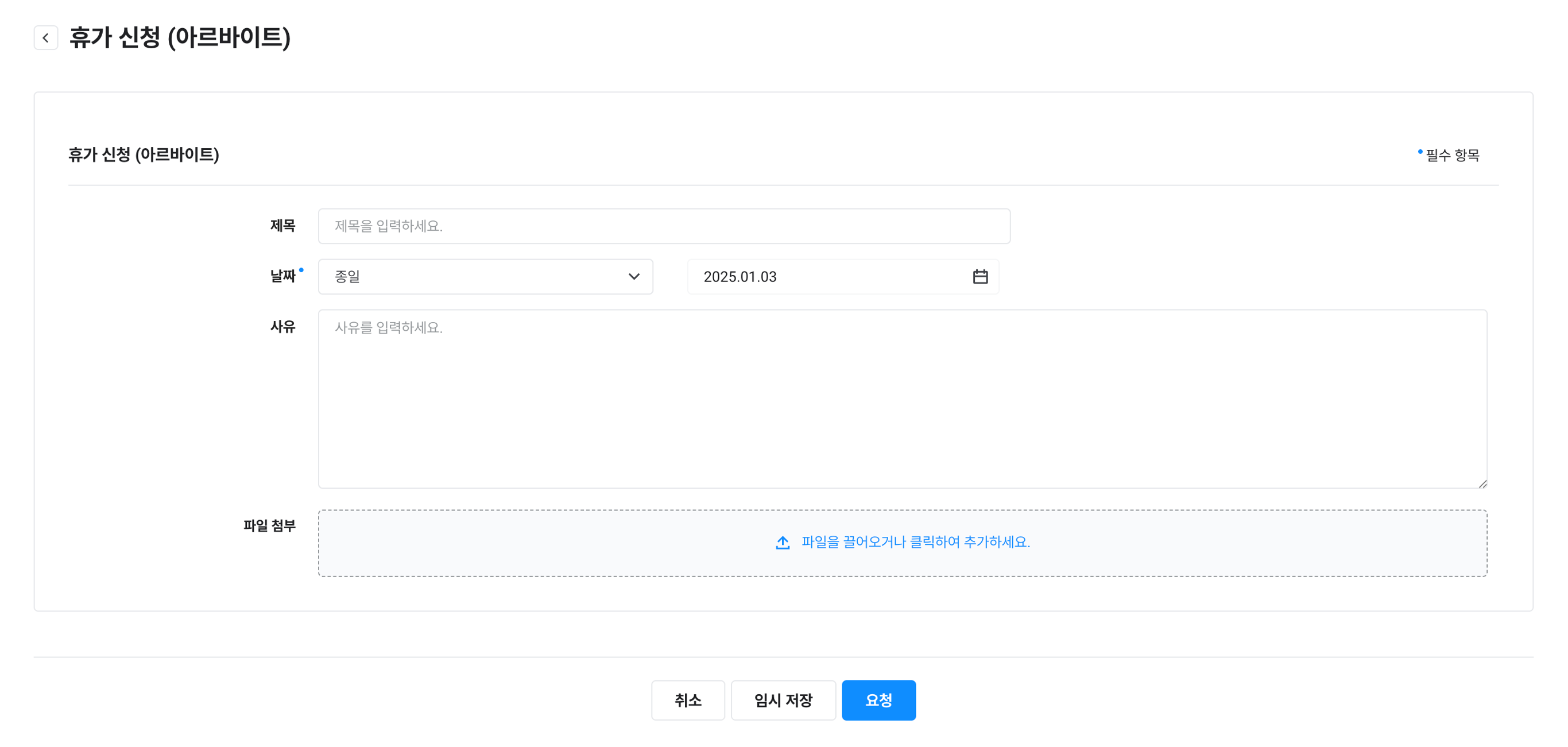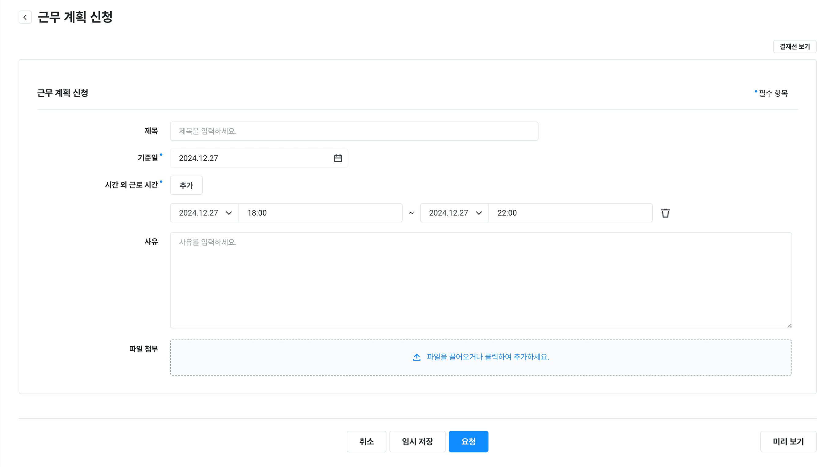 제목, 사유, 파일 첨부 |