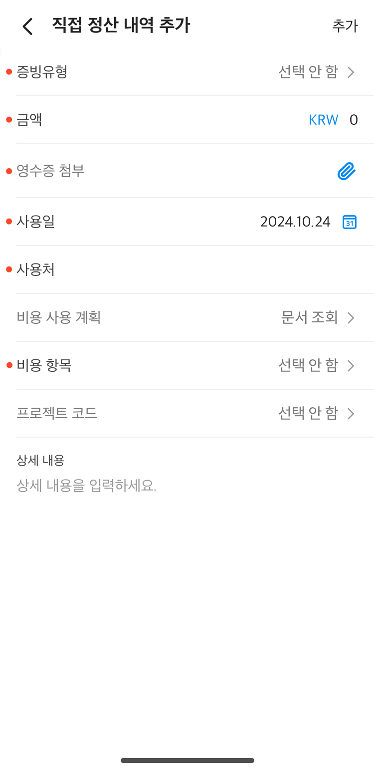 | 비용 정산 신청 |