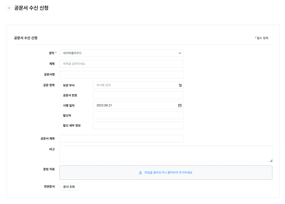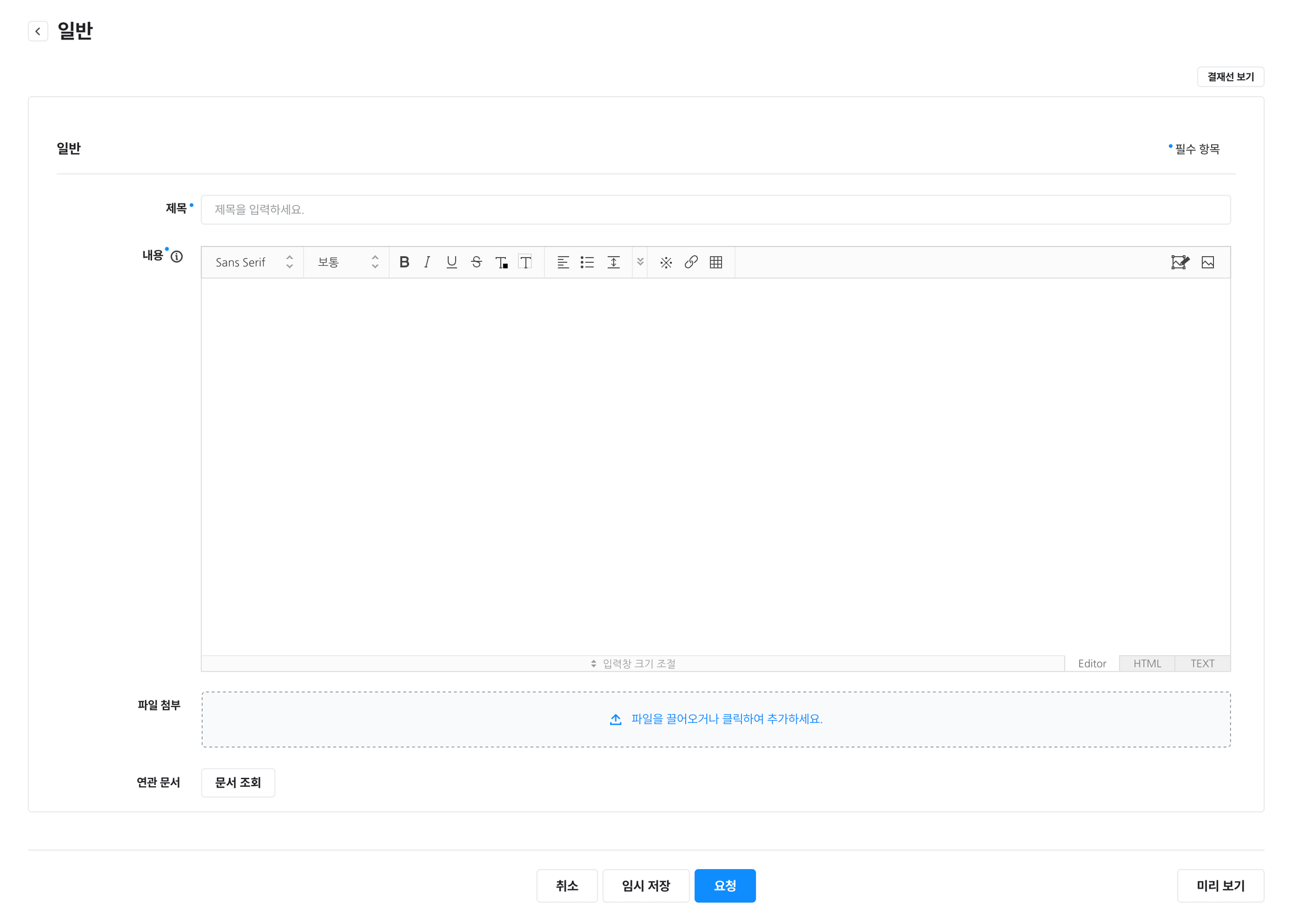 제목, 파일 첨부, 연관 문서 |