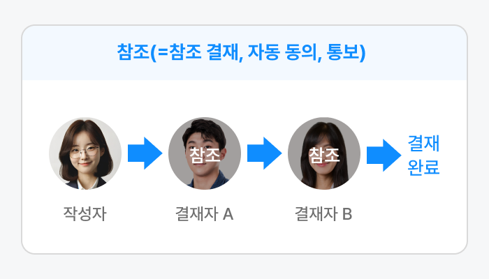 - 결재 구분을 자동 동의(또는 참조 결재/참조/통보)로 설정할 수 없습니다.(결재 구분 참조)