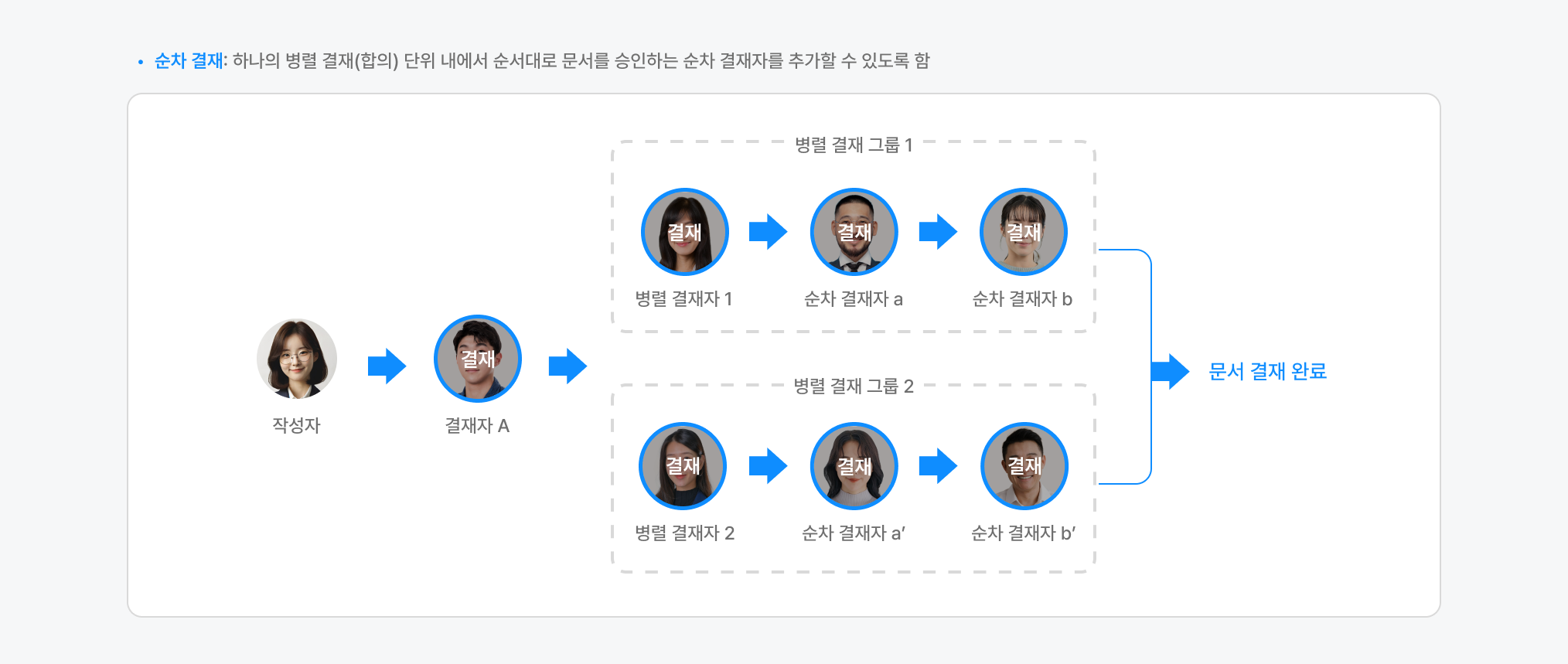 - 필요한 경우, 결재 순서를 변경할 수 있습니다.