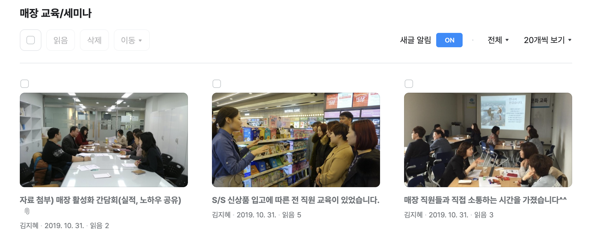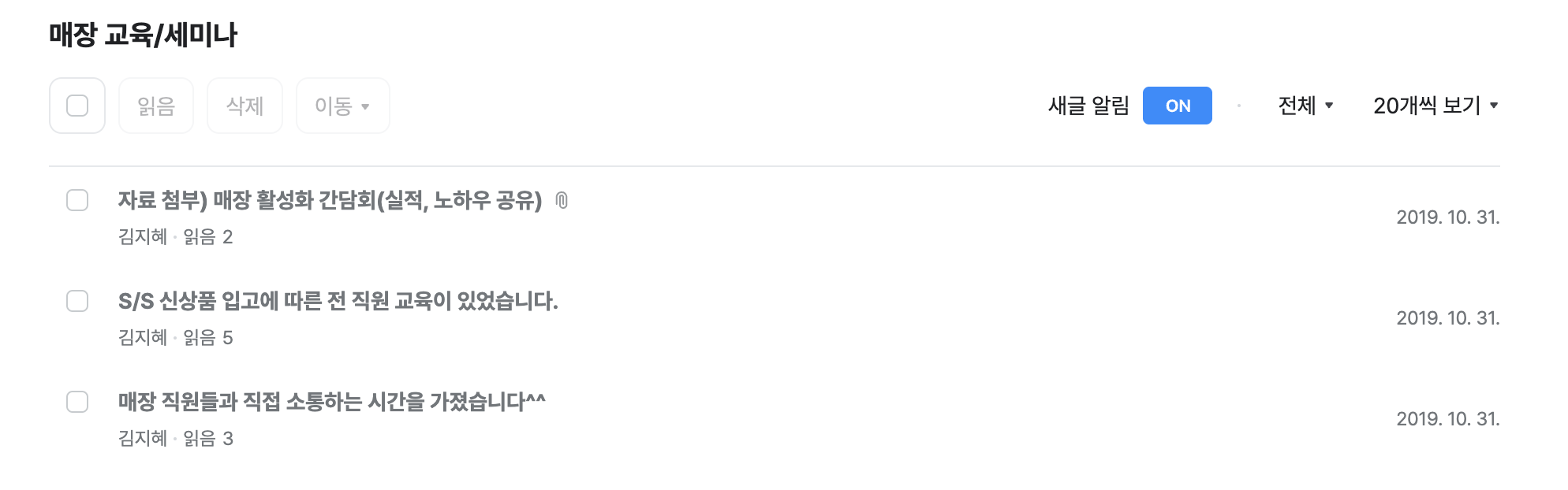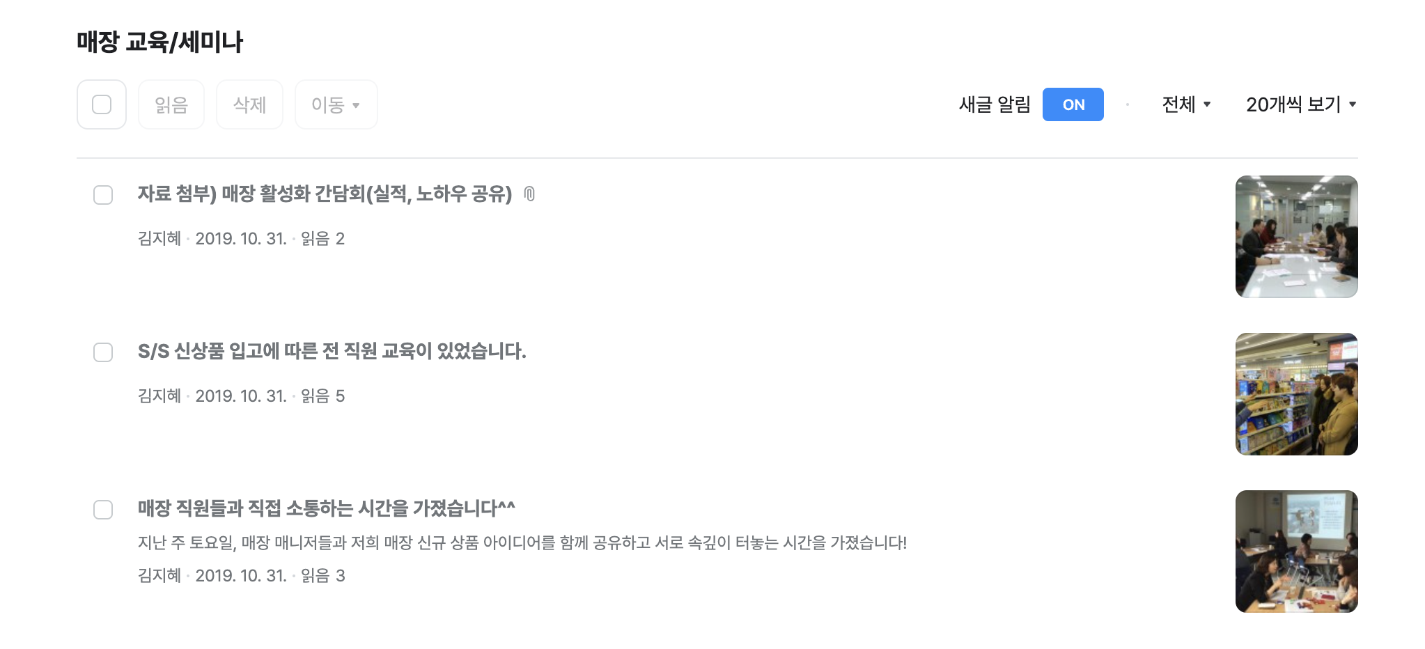 게시판은 회사 직원 대상으로 게시글을 등록해 다른 직원들과 공유할 수 있는 공간입니다.