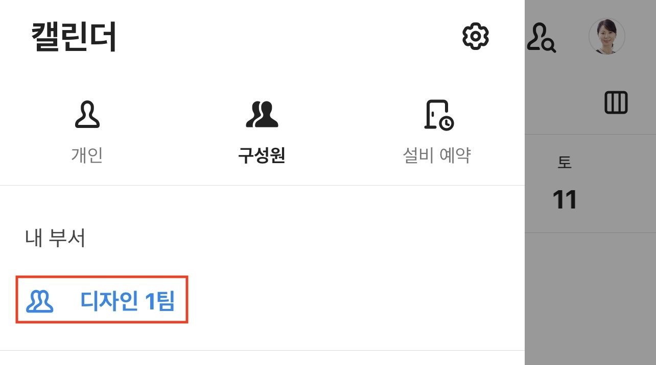 - 캘린더에서 상단의 '구성원'을 탭하거나,