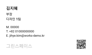 - 세로형, 명함: Admin > PC웹에 등록된 로고가 표시됩니다.